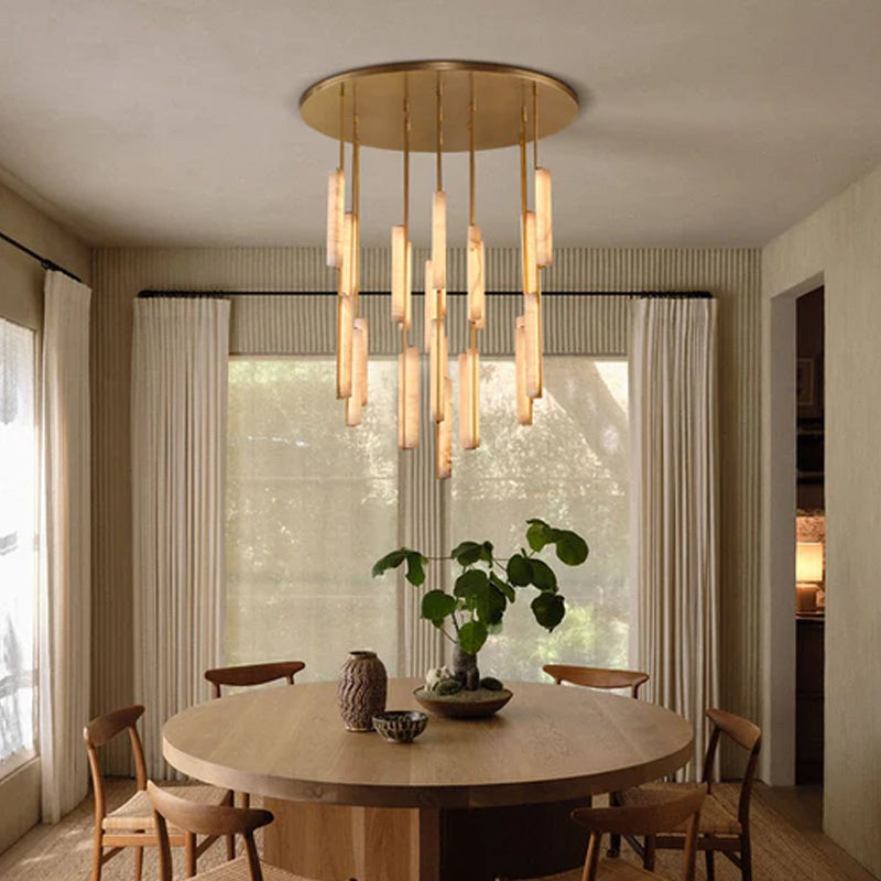 Pearl Alabaster Necklace Round Chandelier 20in 24in 31in 40in | Single Ring Brass D23.62"+D39.37"