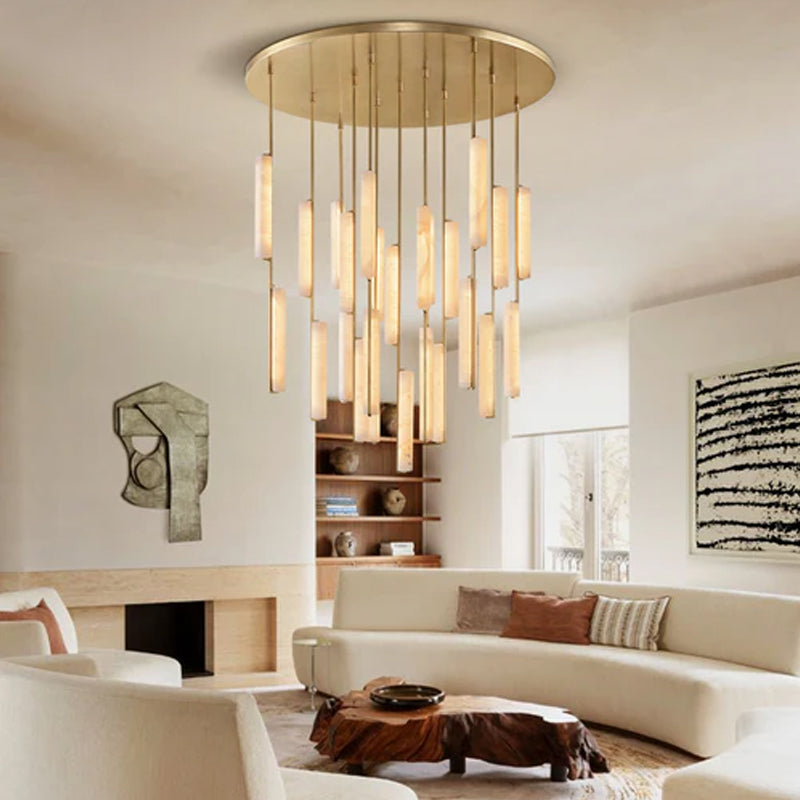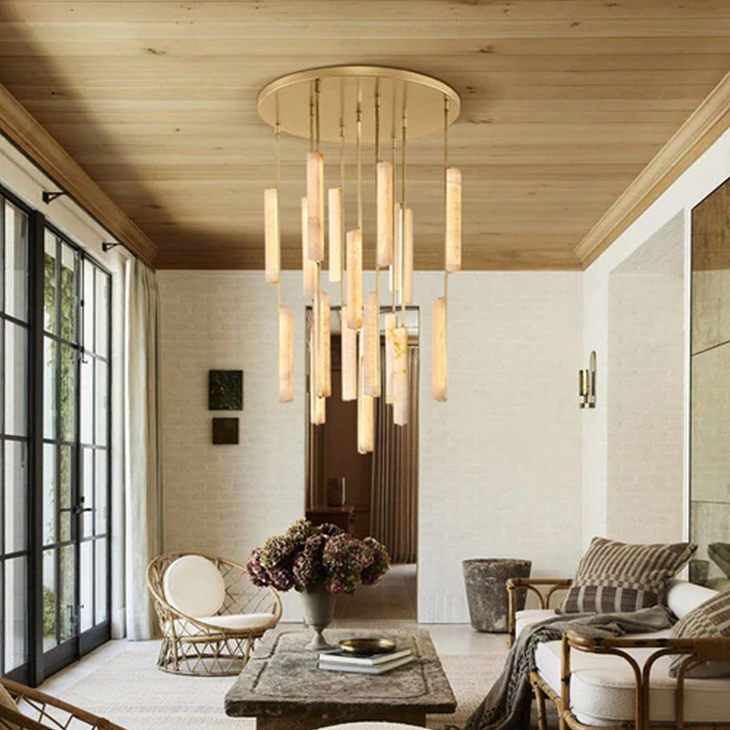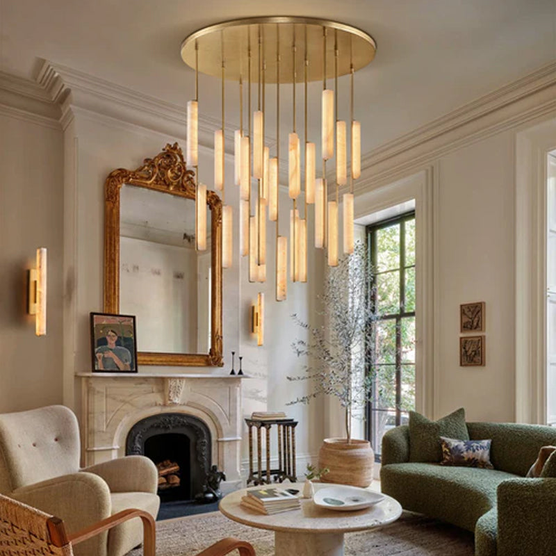 Pearl Alabaster Necklace Round Chandelier 20in 24in 31in 40in | Single Ring Brass D19.69"+D31.5"